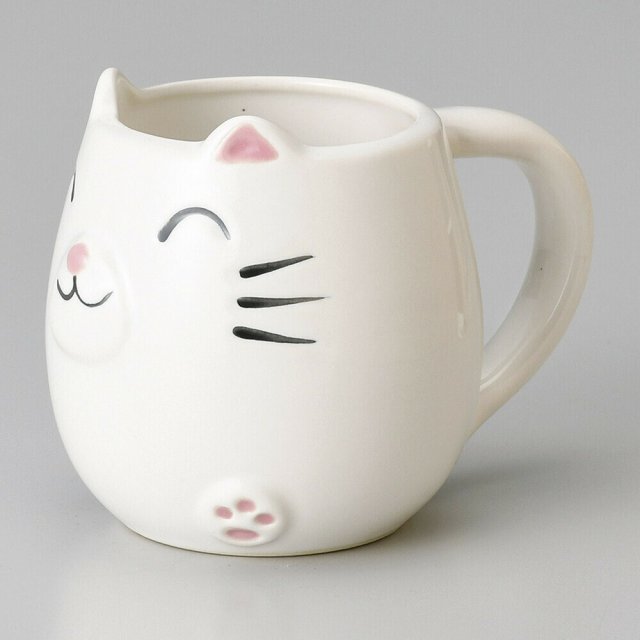 日本美濃燒招財貓瓦杯(白) (日本製)