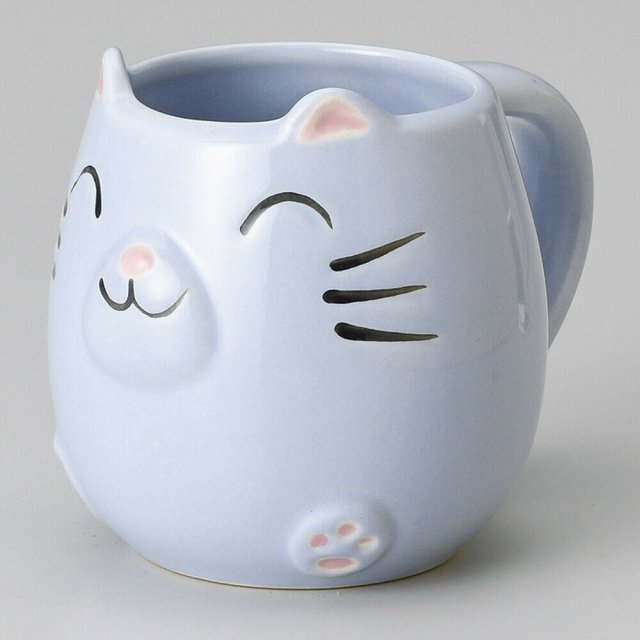 日本美濃燒招財貓瓦杯(藍) (日本製)