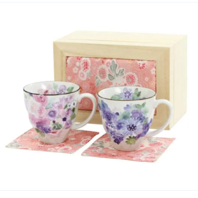 日本美濃燒木盒瓦杯套裝(花工房) (日本製)