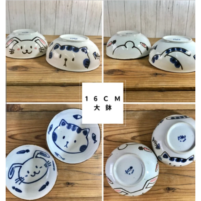 日本美濃燒青海波貓貓瓦碗套裝 (日本製)
