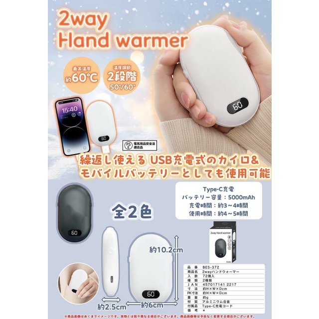 日本2way Hand Warmer USB充電暖蛋 (非日本製)