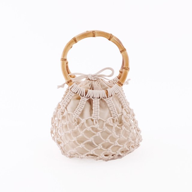 日式手工圓形竹編織包(米) (非日本製)