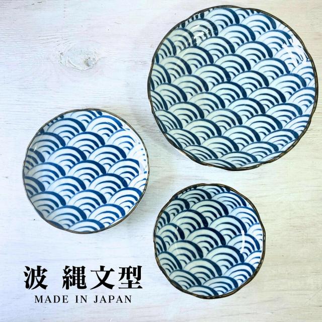 日本美濃燒波縄文型陶瓷瓦碟13.9cm(高4.1cm) (日本製)