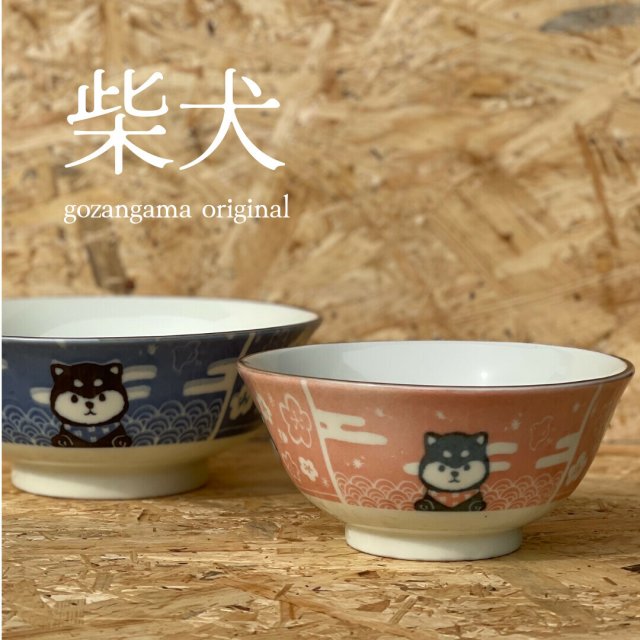 日本美濃燒しばいぬ柴犬瓦碗19CM(粉藍) (日本製)