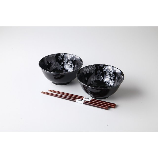 日本美濃燒陶瓷銀櫻花瓦碗連筷子套裝 (日本製)