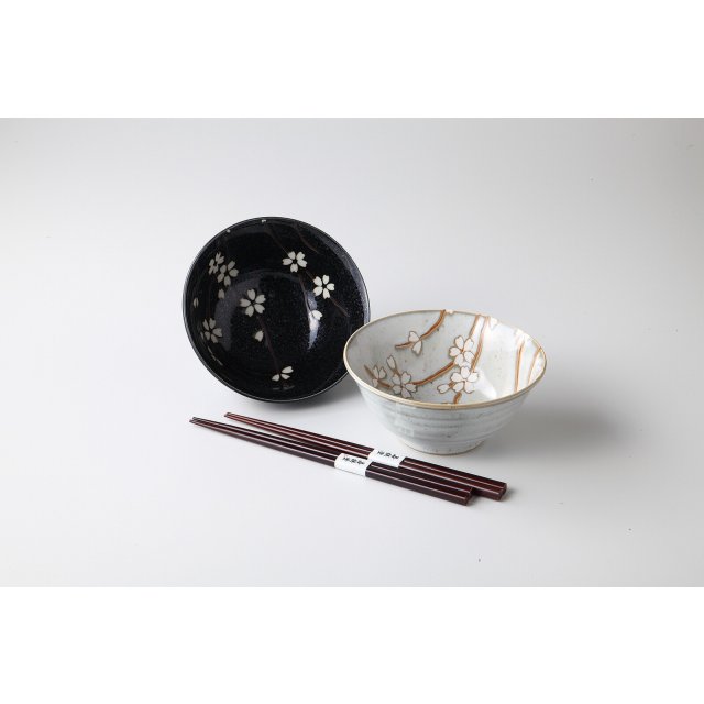 日本美濃燒陶瓷早春華瓦碗連筷子套裝 (日本製)