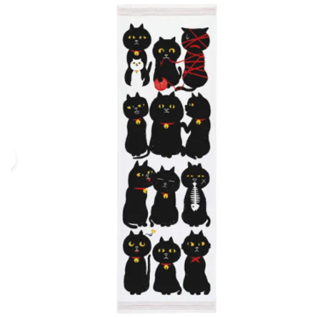 日式傳統創新多功能吸水柔軟紗巾33x100(黑貓) (日本製)