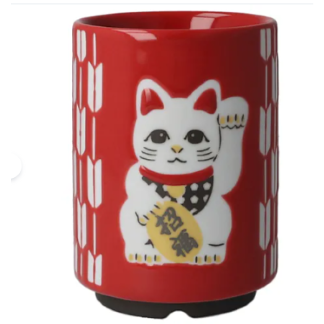 日本美濃燒湯呑(招財貓)(赤) (日本製)