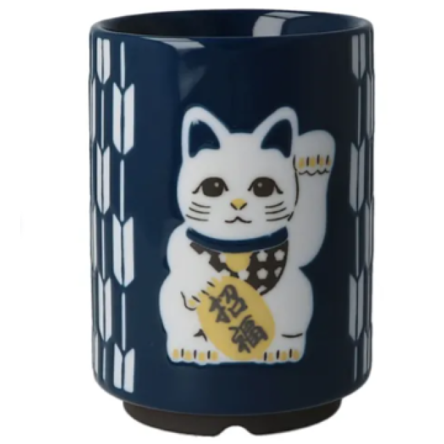 日本美濃燒湯呑(招財貓)(藍) (日本製)