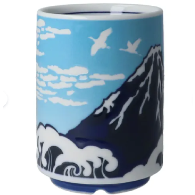 日本美濃燒湯呑(富士山)(藍) (日本製)