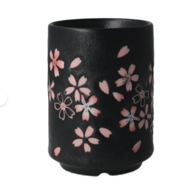 日本美濃燒湯呑(櫻花)(黑) (日本製)