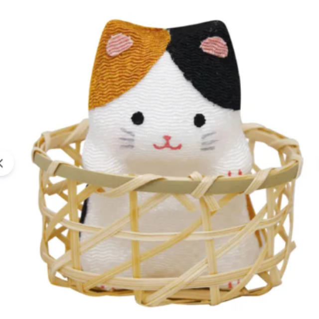 日本人造絲可愛竹籃貓貓擺設(三色) (日本製)