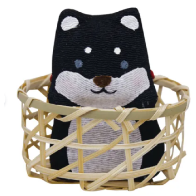 日本人造絲可愛竹籃柴犬擺設(黑色) (日本製)