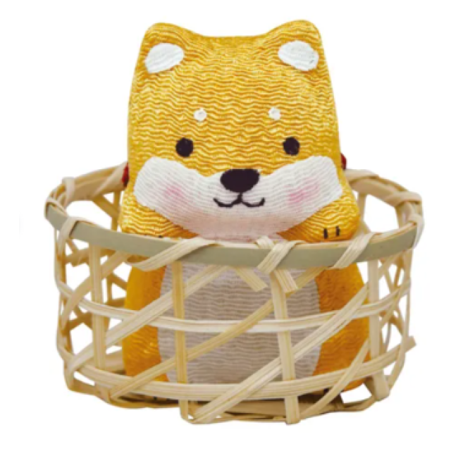 日本人造絲可愛竹籃柴犬擺設(啡色) (日本製)