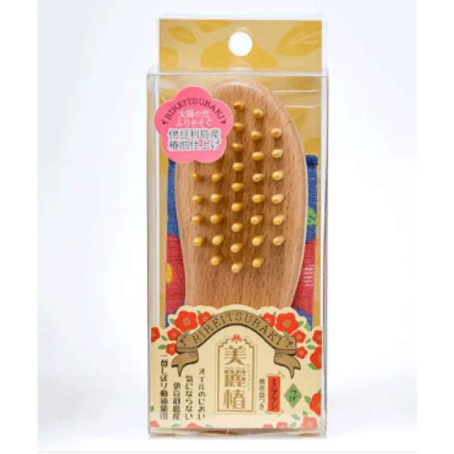 日本天然櫸木山茶花迷你梳(附收納袋) (日本製)